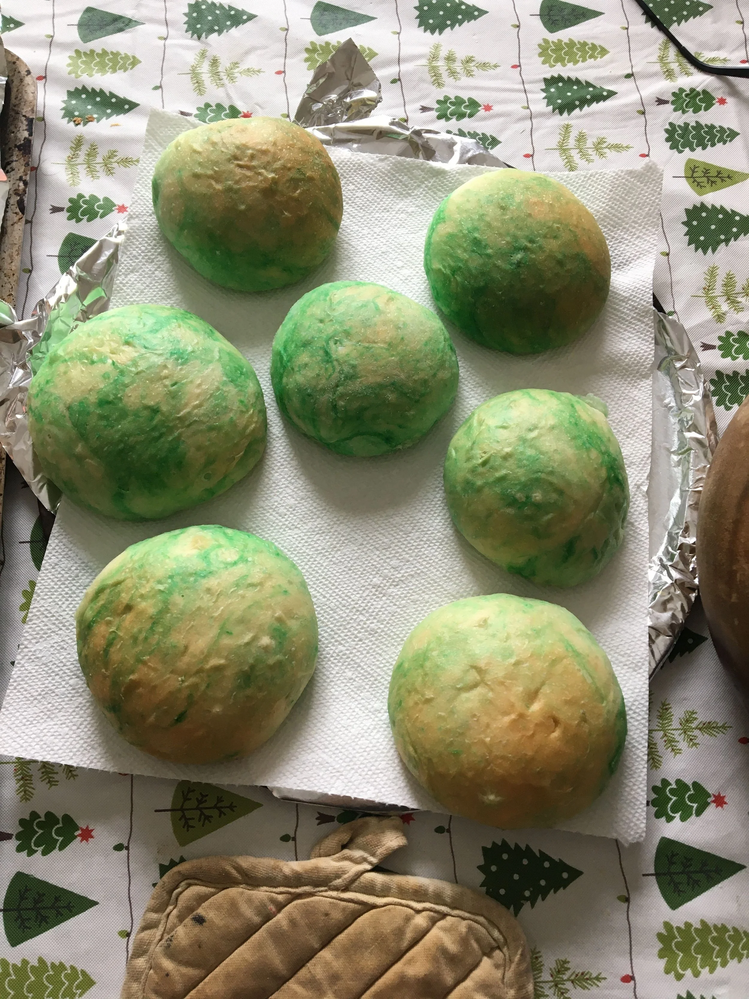 I remember years back I visited Hawaii for the first time with my family. My absolute favorite thing about Hawaii was the Polynesian Cultural Center and even more than that center…their taro bread! I remember watching the different types of Polynesian dances and while I enjoyed the dancing, I couldn’t stop thinking about how I needed to grab more taro buns. When I got home I was like I can’t exist in this world without those taro buns. So I looked up the center’s recipe and started baking. I baked way more rolls than in these pictures, but for some reason I decided to get creative for Christmas and color them. Some may not like the coloring, but I had fun and the rolls were fluffy and sweet (ㅅ´ ˘ `). Their recipe can be found here if interested.
